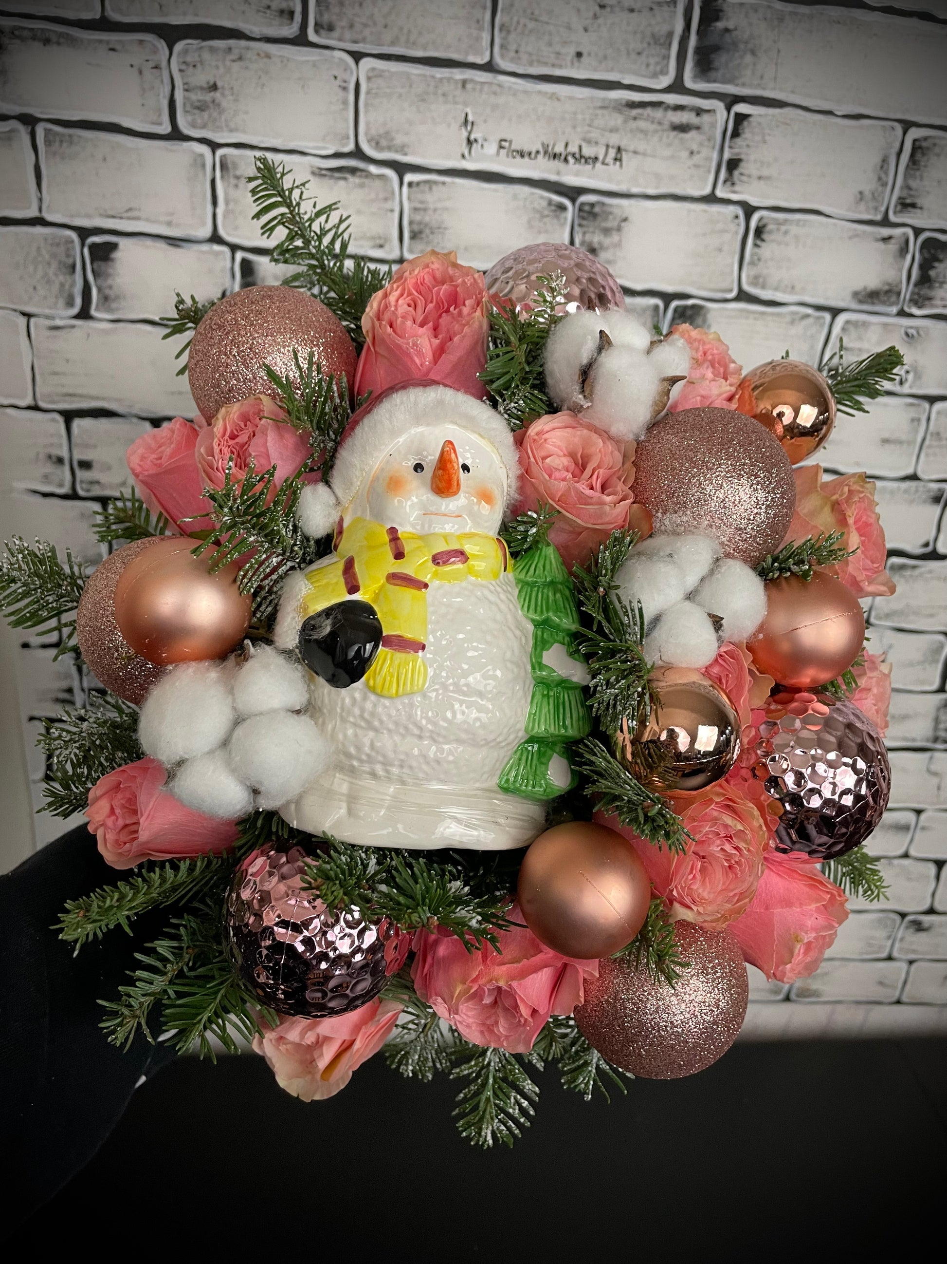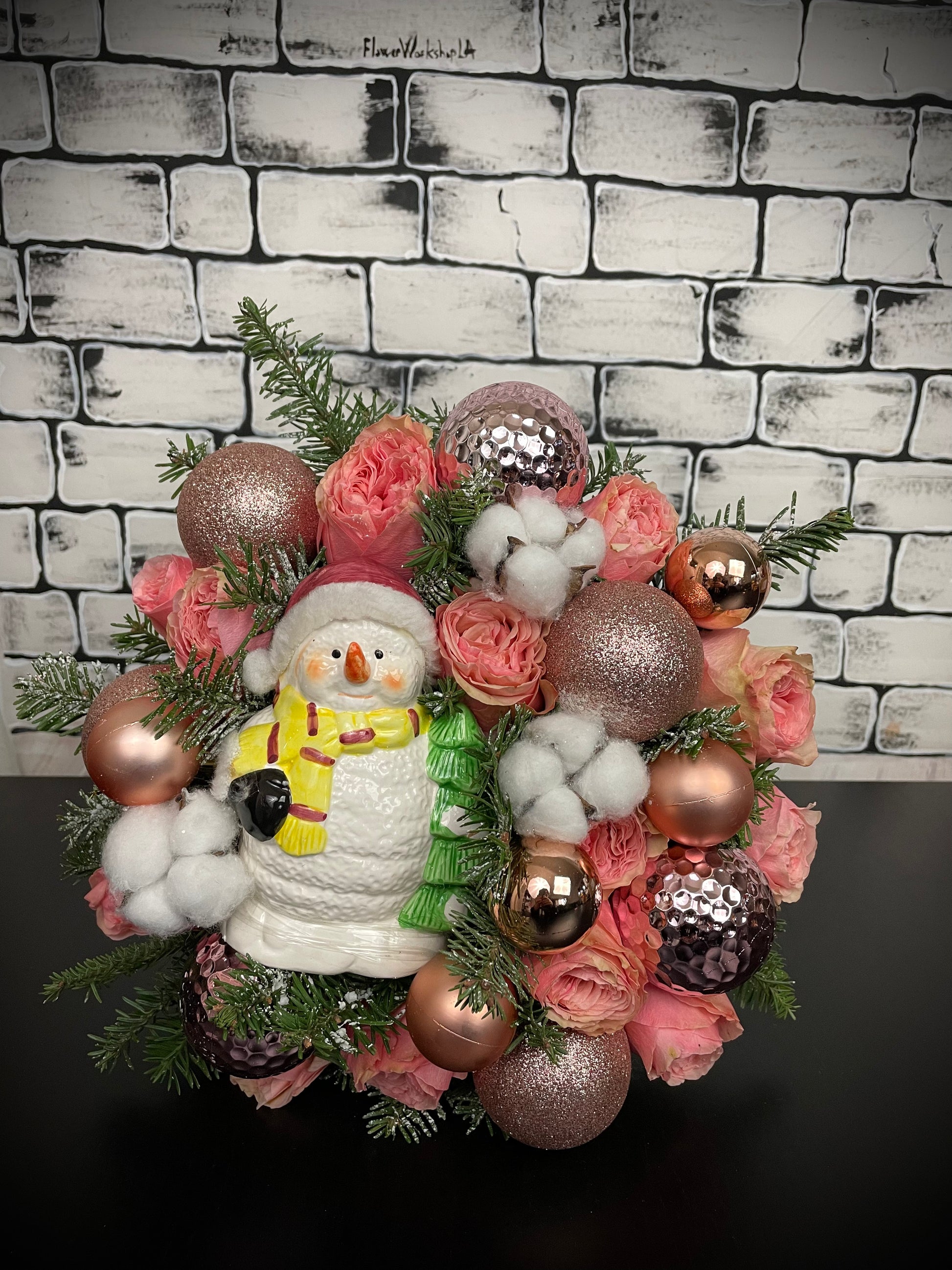 My Snowman and Me ( Pink roses and Christmas ornaments)